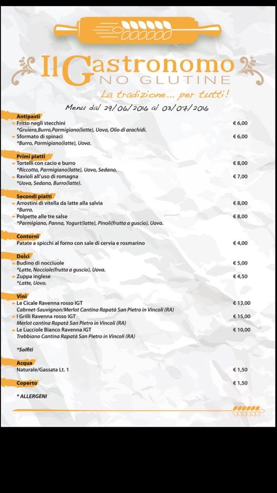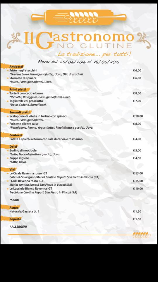 Vi allego anche i menù senza glutine per l’occasione, preparati da Il Gastronomo No Glutine, si consiglia di prenotare: